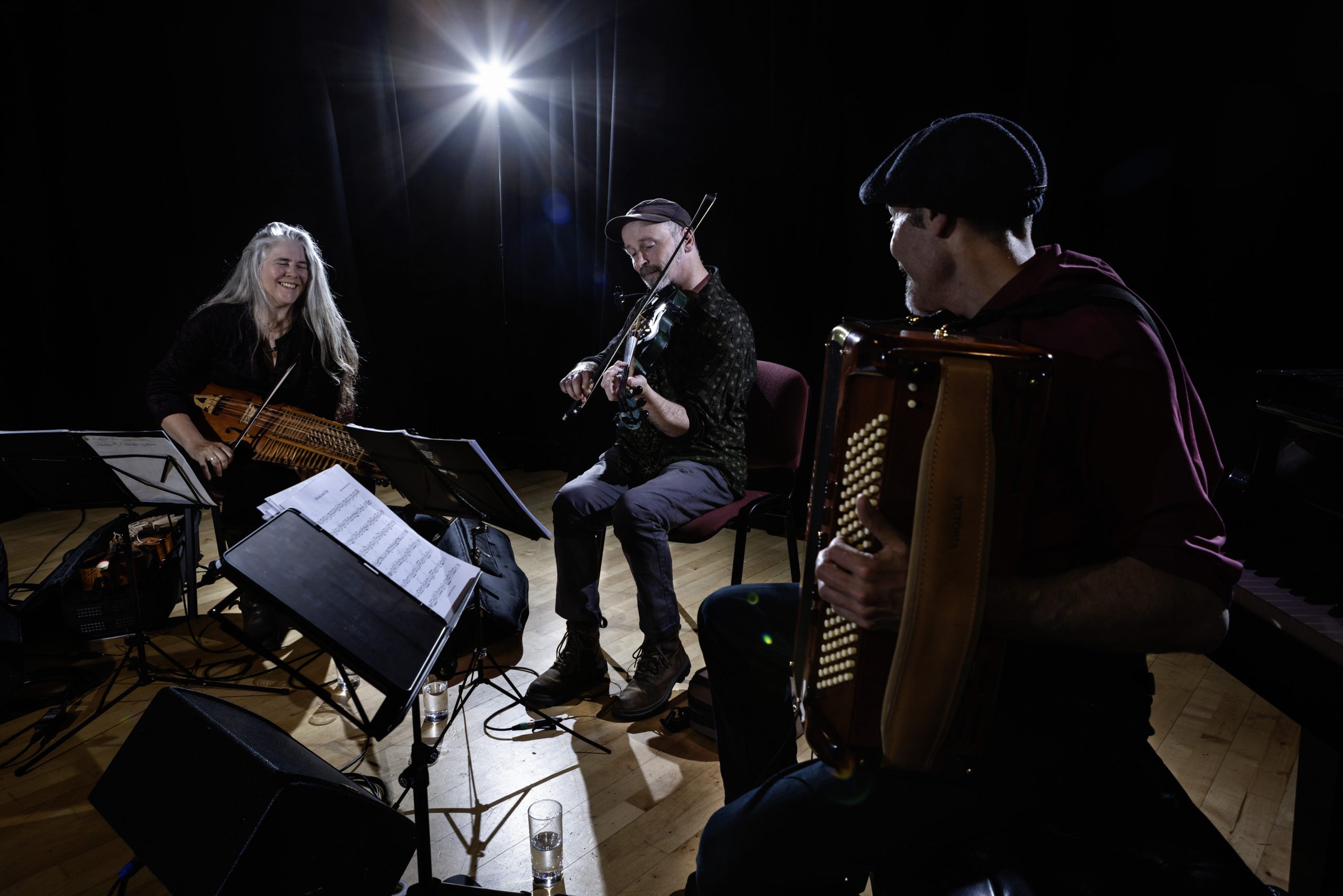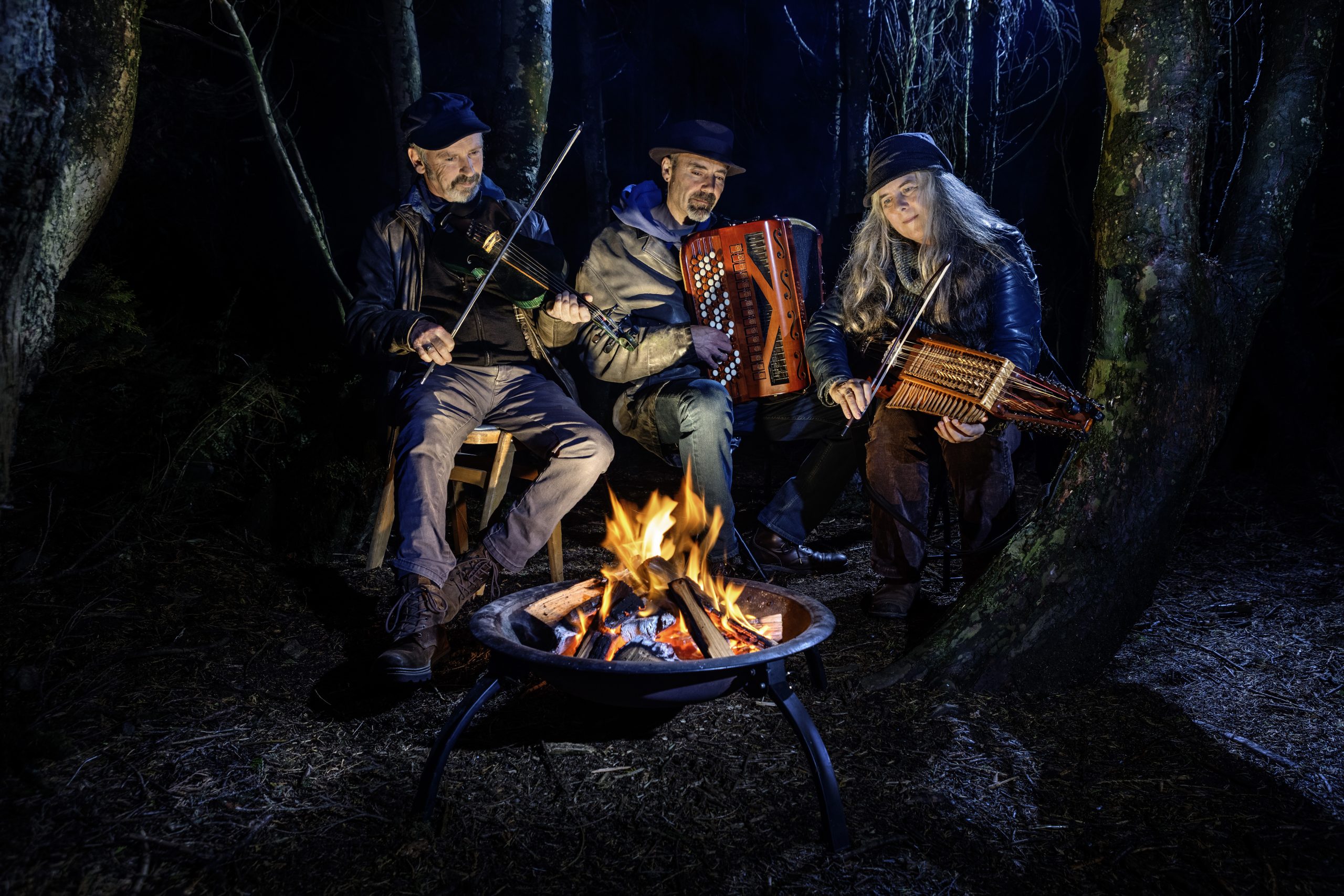 ‘Renowned for their ability to turn simplicity into monumental contemplative musical images. Dance rhythms are interspersed with beautiful (and above all unusual) harmonies, cheerful melancholy, and the joy of the game shines over everything like the sun.’ – Folkové Prázdiny (CZ) describe Firelight Trio live.